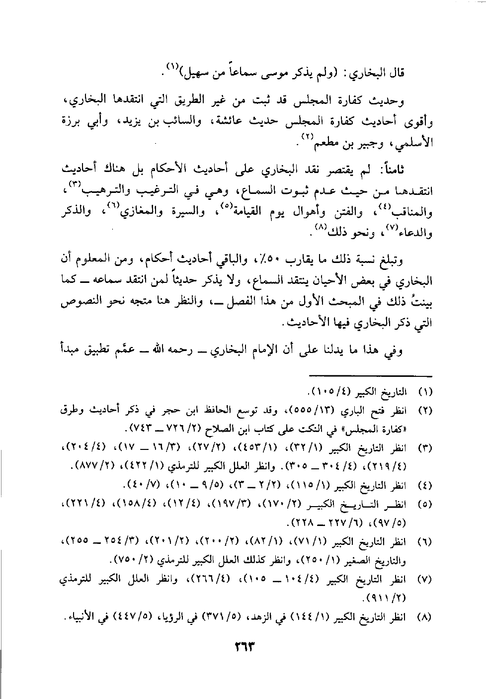 وما ذهب إليه الذهبي وابن حجر من أن البخاري يرى ما لم يثبت فيه السماع أو اللقاء يعد منقطعًا، لا أميل إليه لأن البخاري يصرح عن الانقطاع بألفاظ صريحة وقاطعة مثل قوله في تاريخه: (عطاء أن أبا هريرة، ولم يسمع منه) (¬2) ، وقوله: (معمر لم يسمع من خبيب) (¬3) ، وقوله: (ولا يصح سماع الحسن من أبي هريرة) (¬4) ما من لم يثبت سماعه فلا يقول فيه: "لم يسمع من فلان"، وإنما يختار عبارات دالة على مقصوده مثل: "لا أدري سمع فلان من فلان أم لا؟ " و"لا يعرف سماع فلان من فلان" و "لم يذكر سماع" ونحو ذلك، ومن تأمل هذا الموضع يتضح له الفرق بين المنقطع المعلوم الانقطاع، وبين وما لم يثبت فيه السماع فلا يسمى منقطعًا كما قال ابن القطان، لأن من لم يثبت له سماع ممن روى عنه ففي ذلك شبهة عدم اتصال السند، أما المنقطع فعدم الاتصال يكون محل يقين وجزم، ولعل قصد الذهبي وابن حجر أن ما لم يثبت فيه السماع في حكم المنقطع من حيث عدم الاحتجاج به.