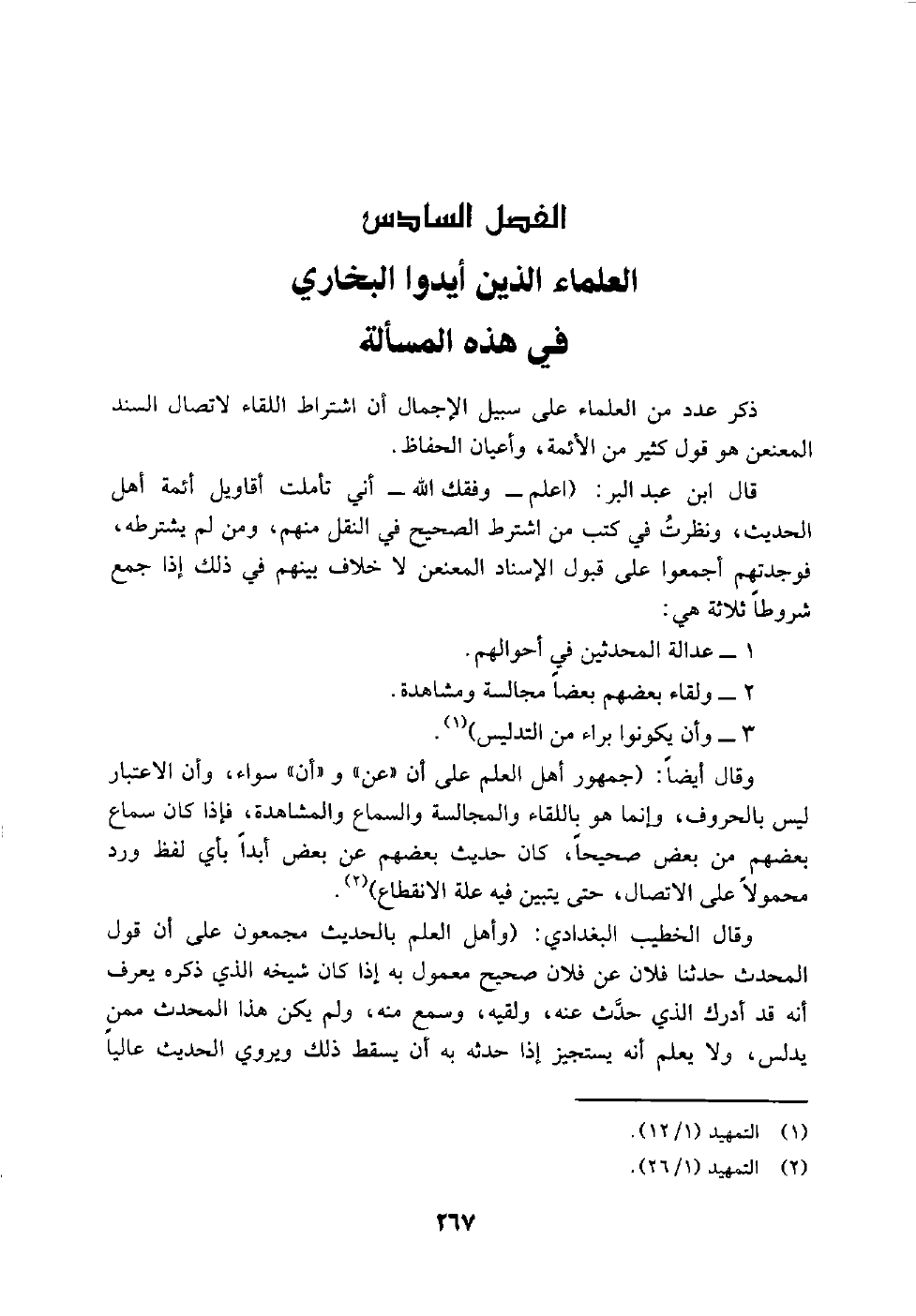 كتاب موقف الإمامين البخاري ومسلم من اشتراط اللقيا والسماع في السند المعنعن بين المتعاصرين