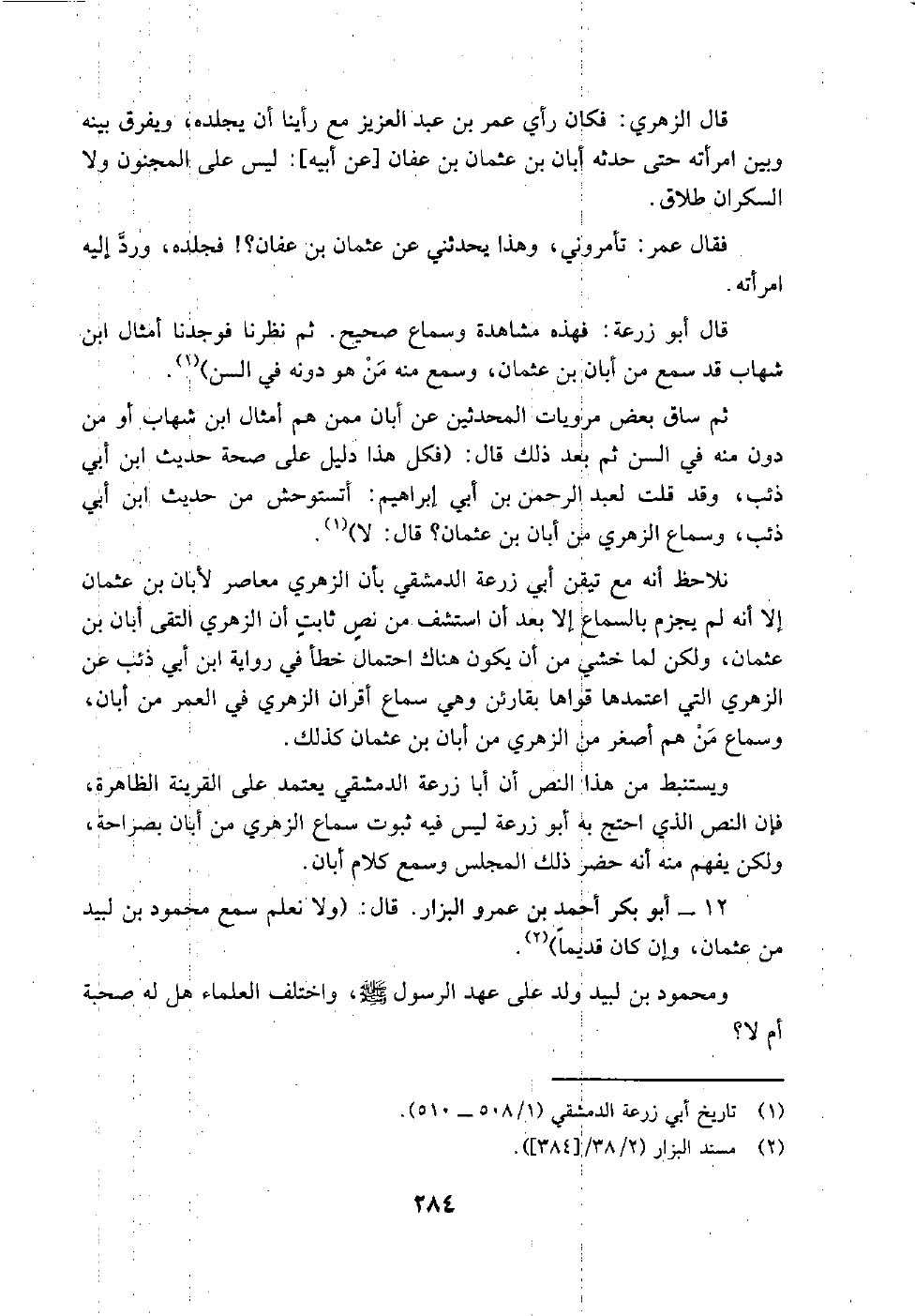 وأجاب ابن معين من سأله: (الزهري سمع من ابن عمر؟ قال: لا. قال: فرآه رؤية؟ قال: يشبه) (¬7) .