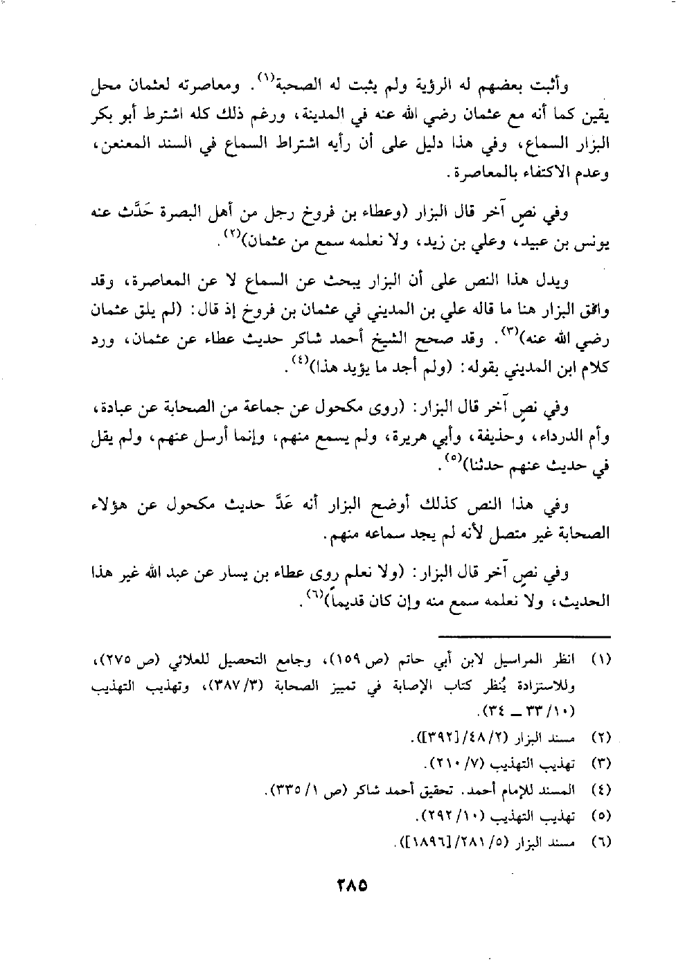 وهنا نرى ابن معين لا يدفع رؤية الزهري لابن عمر، وإنما يدفع السماع مع ورود ما يدل على اجتماع الزهري بابن عمر رضي الله عنهما، ولكن ابن معين كما هو الظاهر يشترط السماع لاتصال السند المعنعن، ولا يكتفي بثبوت اللقاء.