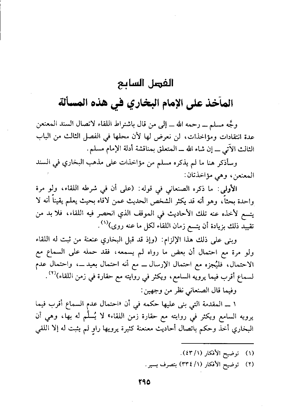 كتاب موقف الإمامين البخاري ومسلم من اشتراط اللقيا والسماع في السند المعنعن بين المتعاصرين