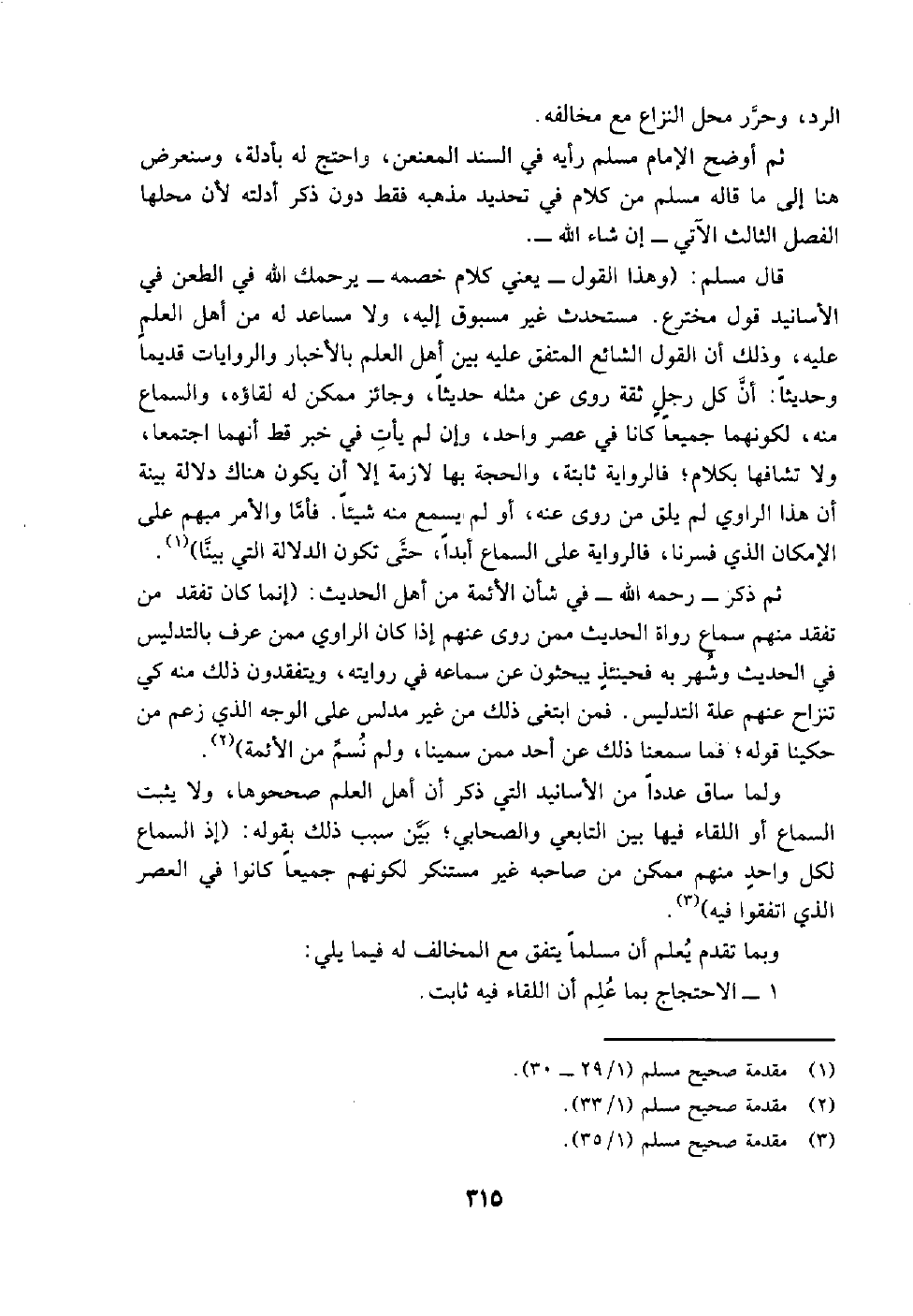 ومع الاختلاف في تحديد اسم المعني بالرد إلا أنني خلال اطلاعي على المصادر وجدت اتفاقًا بين أكثر العلماء بأن مذهب البخاري وابن المديني موافق للمذهب الذي تصدى له مسلم بالرد والتفنيد، ولم أر أحدًا أدعى أن مذهبهما في السند المعنعن مختلف عن المذهب الذي رده مسلم.