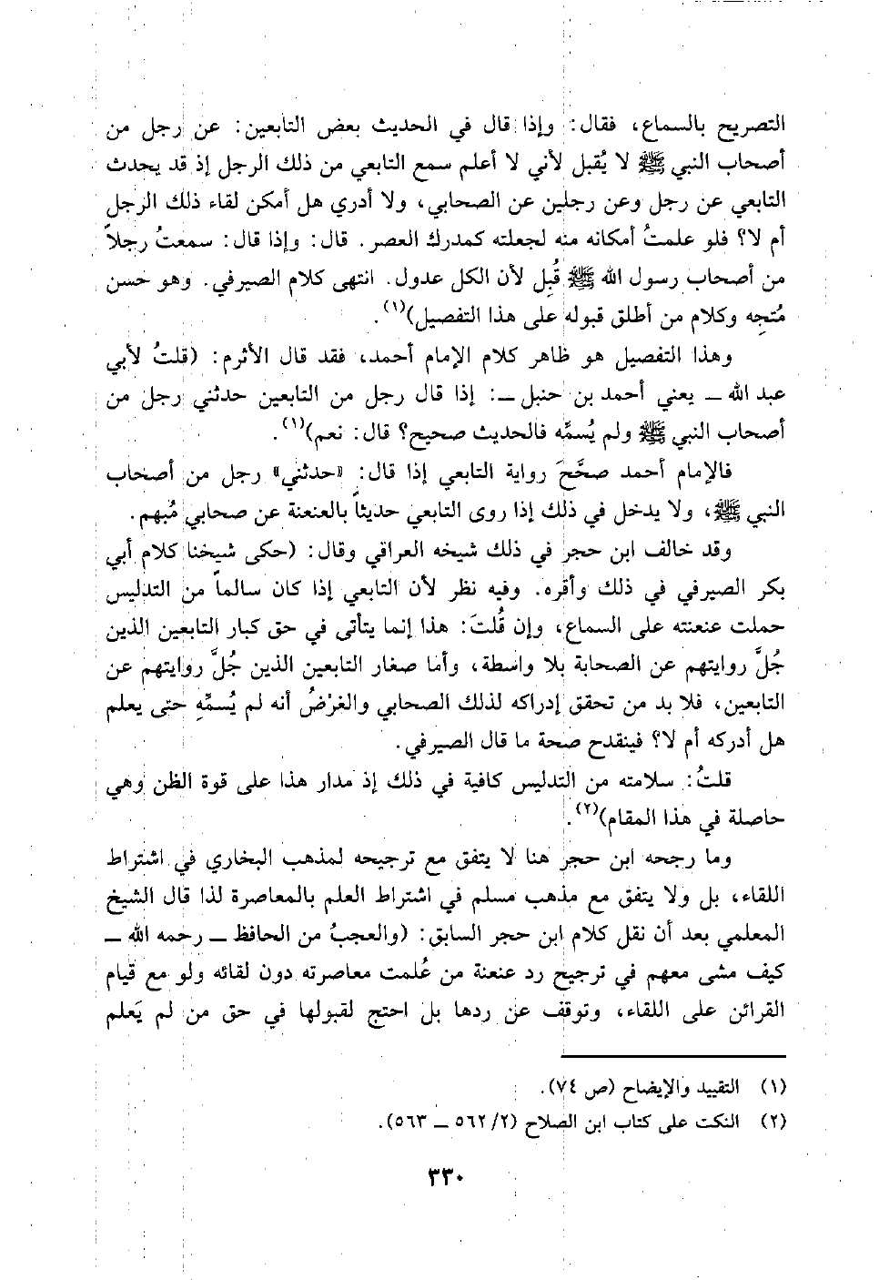 لا تكون المعاصرة كافية لاتصال السند المعنعن عند مسلم إلا إذا توفرت فيها أمور: