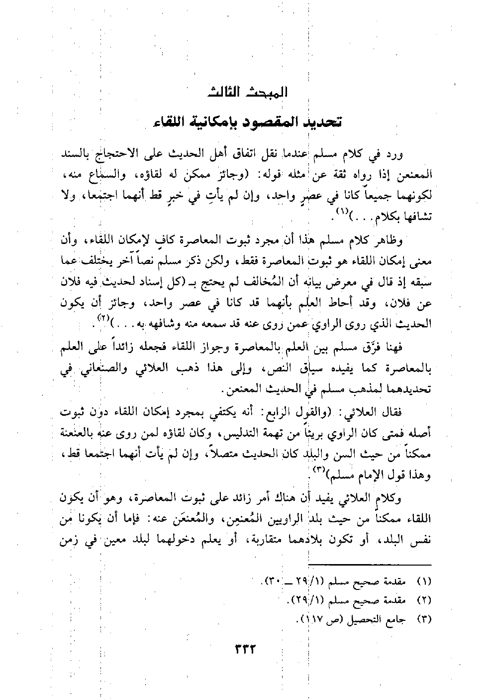 كتاب موقف الإمامين البخاري ومسلم من اشتراط اللقيا والسماع في السند المعنعن بين المتعاصرين