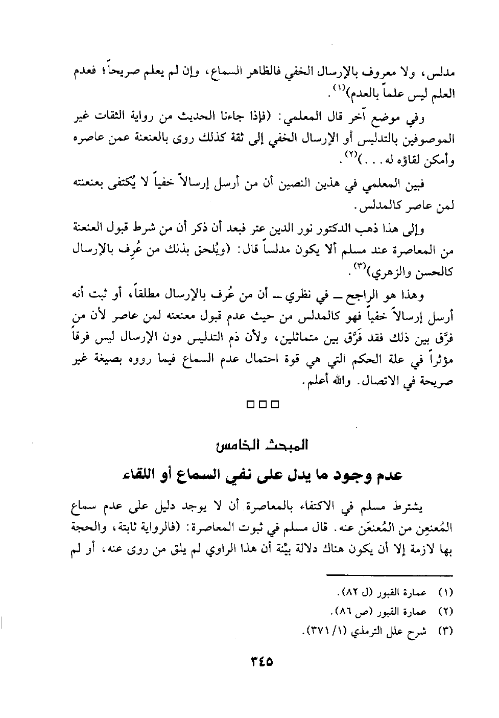 كتاب موقف الإمامين البخاري ومسلم من اشتراط اللقيا والسماع في السند المعنعن بين المتعاصرين