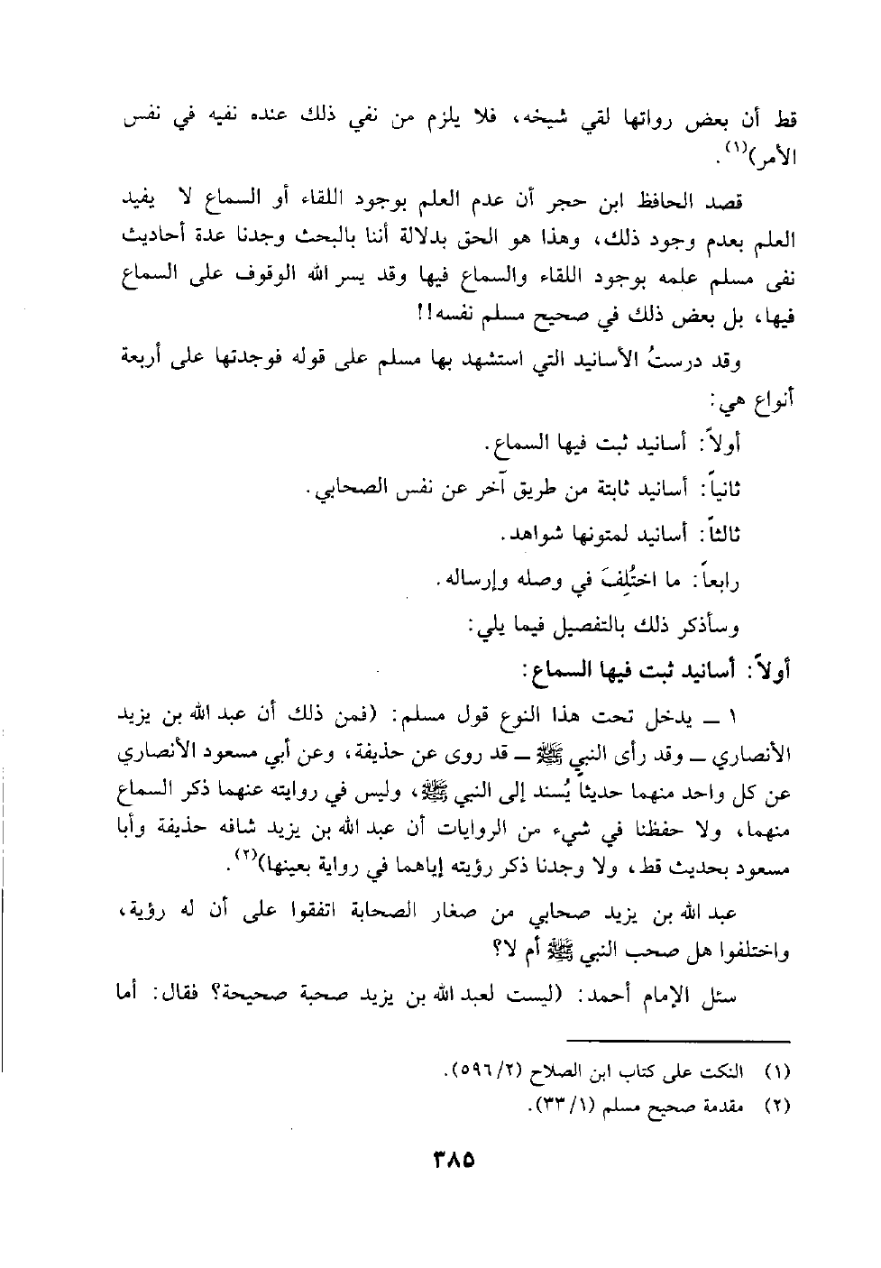 كتاب موقف الإمامين البخاري ومسلم من اشتراط اللقيا والسماع في السند المعنعن بين المتعاصرين