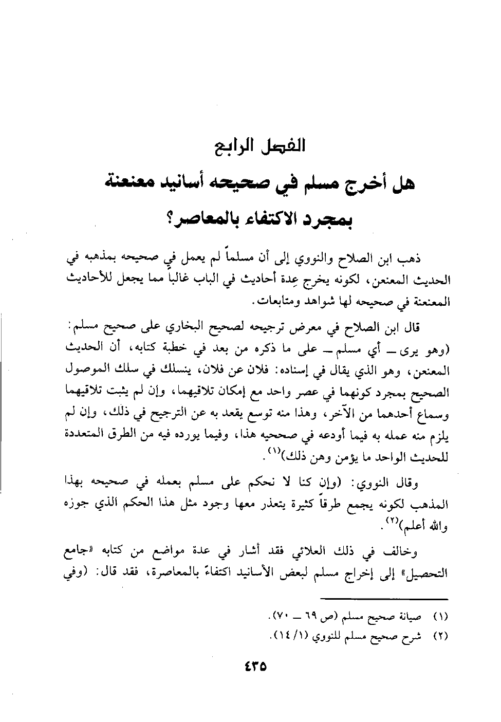 كتاب موقف الإمامين البخاري ومسلم من اشتراط اللقيا والسماع في السند المعنعن بين المتعاصرين
