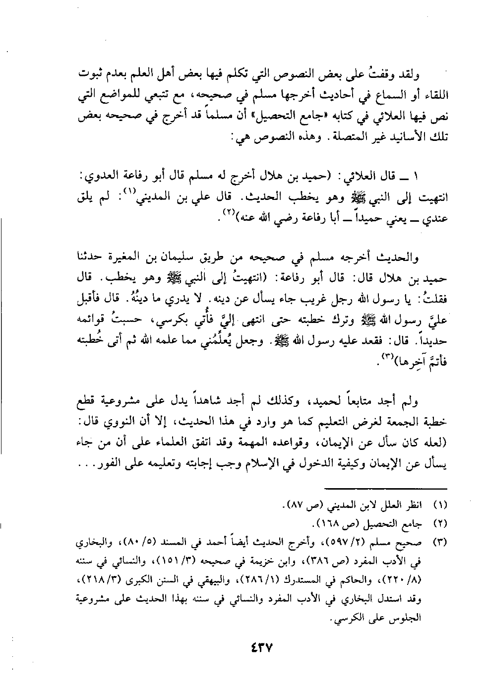 كتاب موقف الإمامين البخاري ومسلم من اشتراط اللقيا والسماع في السند المعنعن بين المتعاصرين