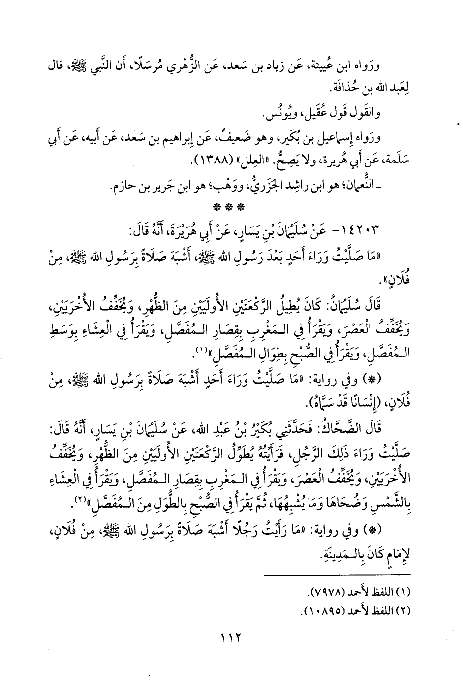 «ما صليت وراء أحد بعد رسول الله صَلى الله عَليه وسَلم أشبه صلاة برسول الله صَلى الله عَليه وسَلم من فلان».
