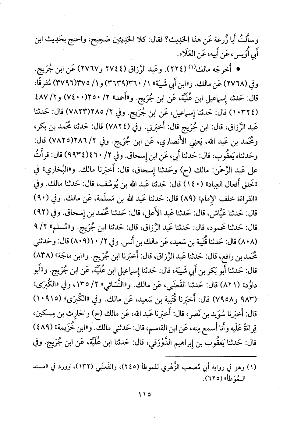 وفي (٧٨٢٤) قال: حدثنا محمد بن بكر، ومحمد بن عبد الله، يعني الأَنصاري، عن ابن جُريج. وفي ٢/ ٢٨٦ (٧٨٢٥) قال: وحدثناه يعقوب، قال: حدثنا أبي، عن ابن إسحاق. وفي ٢/ ٤٦٠ (٩٩٣٤) قال: قرأتُ على عبد الرَّحمَن: مالك (ح) وحدثنا إسحاق، قال: أخبرنا مالك. و «البخاري» في «خلق أفعال العباد» (١٤٠) قال: حدثنا عبد الله بن يوسف، قال: حدثنا مالك. وفي «القراءة خلف الإمام» (٨٩) قال: حدثنا عبد الله بن مَسلَمة، عن مالك. وفي (٩٠) قال: حدثنا عياش، قال: حدثنا عبد الأعلى، قال: حدثنا محمد بن إسحاق. وفي (٩٢) قال: حدثنا محمود، قال: حدثنا عبد الرزاق، قال: حدثنا ابن جُريج. و «مسلم» ٢/ ٩ (٨٠٨) قال: حدثنا قتيبة بن سعيد، عن مالك بن أنس. وفي ٢/ ١٠ (٨٠٩) قال: وحدثني محمد بن رافع، قال: حدثنا عبد الرزاق، قال: أخبرنا ابن جُريج. و «ابن ماجة» (٨٣٨) قال: حدثنا أَبو بكر بن أبي شيبة، قال: حدثنا إسماعيل ابن عُلَية، عن ابن جُريج. و «أَبو داود» (٨٢١) قال: حدثنا القَعنَبي، عن مالك. و «النَّسَائي» ٢/ ١٣٥، وفي «الكبرى» (٩٨٣ و ٧٩٥٨) قال: أخبرنا قتيبة بن سعيد، عن مالك. وفي «الكبرى» (١٠٩١٥) قال: أخبرنا سويد بن نصر، قال: أخبرنا عبد الله، عن مالك (ح) والحارث بن مسكين، قراءة عليه وأنا أسمع منه، عن ابن القاسم، قال: حدثني مالك. و «ابن خزيمة» (٤٨٩) قال: حدثنا يعقوب بن إبراهيم الدورقي، قال: حدثنا ابن عُلَية، عن ابن جُريج. وفي