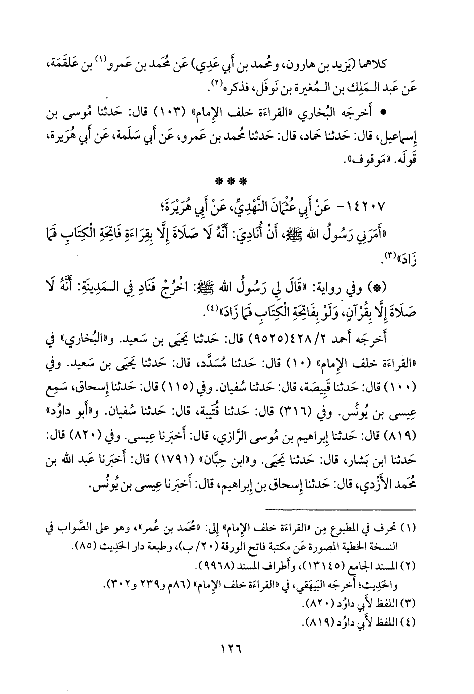 أخرجه أحمد (٩٥٢٥) قال: حدثنا يحيى بن سعيد. و «البخاري» في «القراءة خلف الإمام» (١٠) قال: حدثنا مُسدد، قال: حدثنا يحيى بن سعيد. وفي (١٠٠) قال: حدثنا قَبيصَة، قال: حدثنا سفيان. وفي (١١٥) قال: حدثنا إسحاق، سمع عيسى بن يونس. وفي (٣١٦) قال: حدثنا قتيبة، قال: حدثنا سفيان. و «أَبو داود» (٨١٩) قال: حدثنا إبراهيم بن موسى الرازي، قال: أخبرنا عيسى. وفي (٨٢٠) قال: حدثنا ابن بشار، قال: حدثنا يحيى. و «ابن حِبَّان» (١٧٩١) قال: أخبرنا عبد الله بن محمد الأزدي، قال: حدثنا إسحاق بن إبراهيم، قال: أخبرنا عيسى بن يونس.