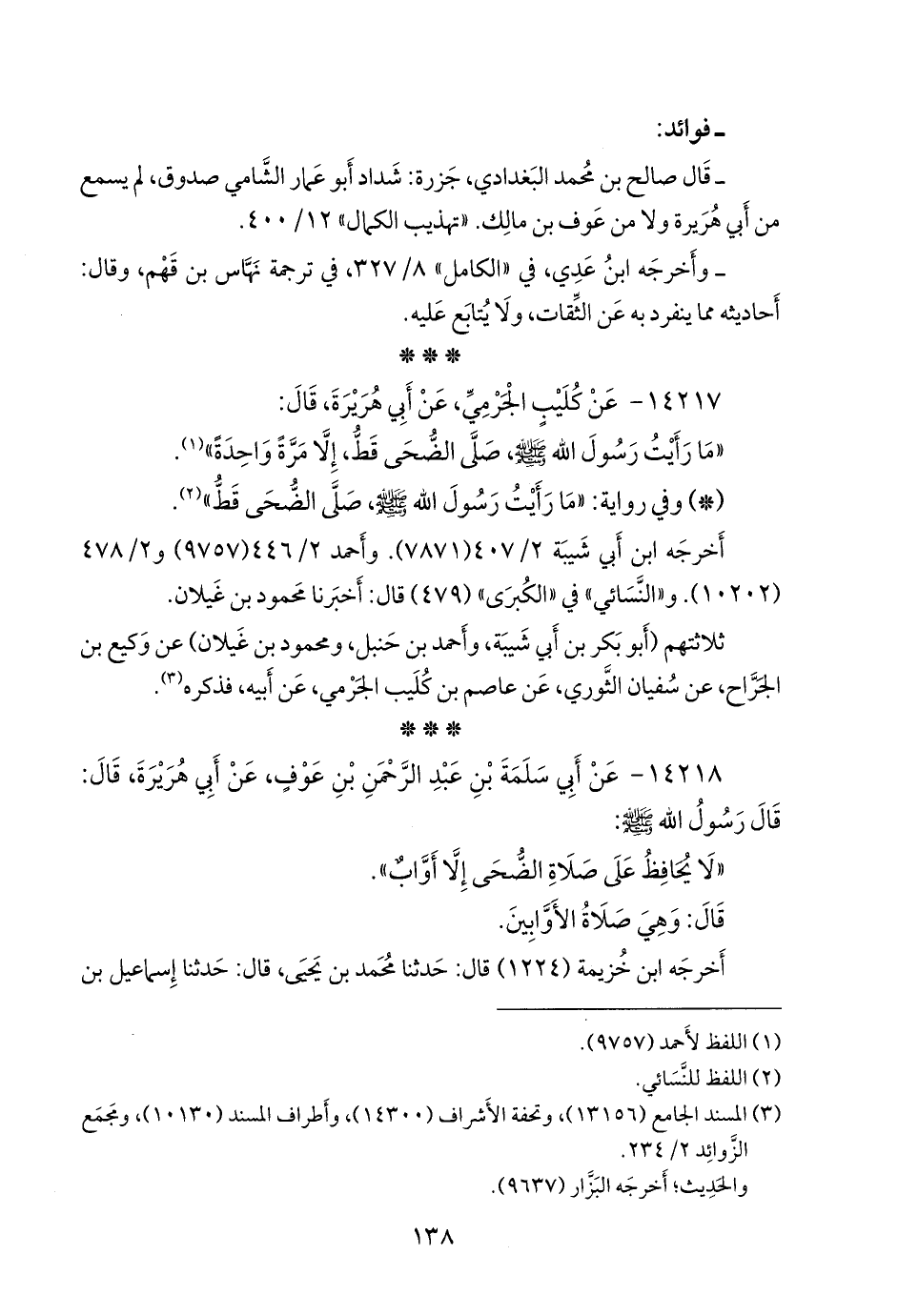 (¬٣) المسند الجامع (١٣١٥٦)، وتحفة الأشراف (١٤٣٠٠)، وأطراف المسند (١٠١٣٠)، ومَجمَع الزوائد ٢/ ٢٣٤.