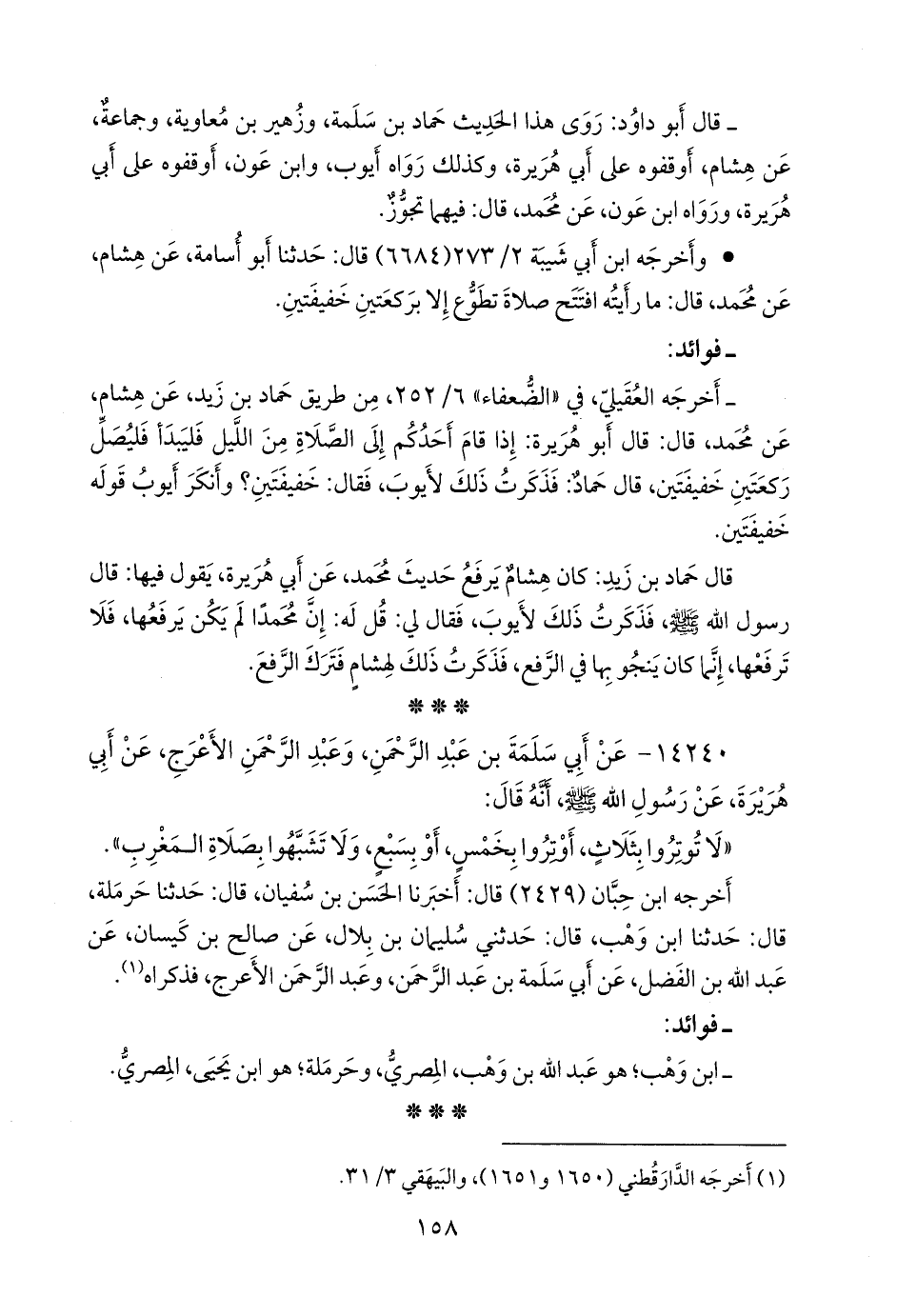 - قال البيهقي: رواه جماعة عن هشام موقوفا على أبي هريرة، منهم حماد ابن سلمة، وحماد بن زيد.