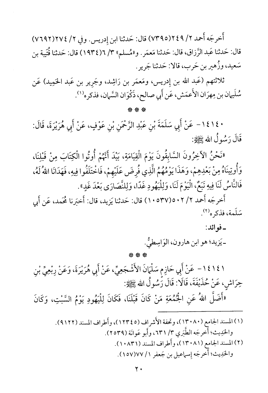 (¬٢) المسند الجامع (٣٢٩١ و ١٣٠٨٢)، وتحفة الأشراف (٣٣١١ و ١٣٣٩٧).