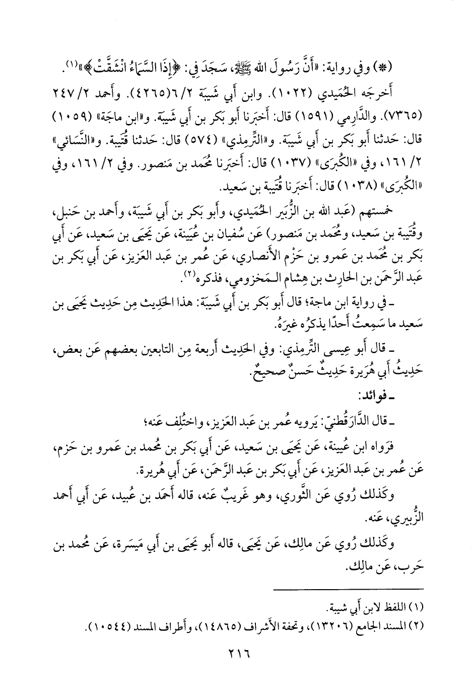 فرواه ابن عُيينة، عن يحيى بن سعيد، عن أَبي بكر بن محمد بن عَمرو بن حزم، عن عمر بن عبد العزيز، عن أَبي بكر بن عبد الرَّحمَن، عن أبي هريرة.