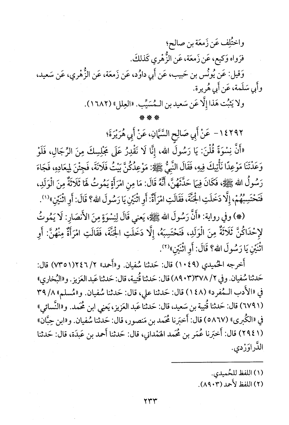 (¬٣) المسند الجامع (١٤٢٦٧)، وتحفة الأشراف (١٢٦٦٨ و ١٢٧١٥)، وأطراف المسند (٩١١٨).