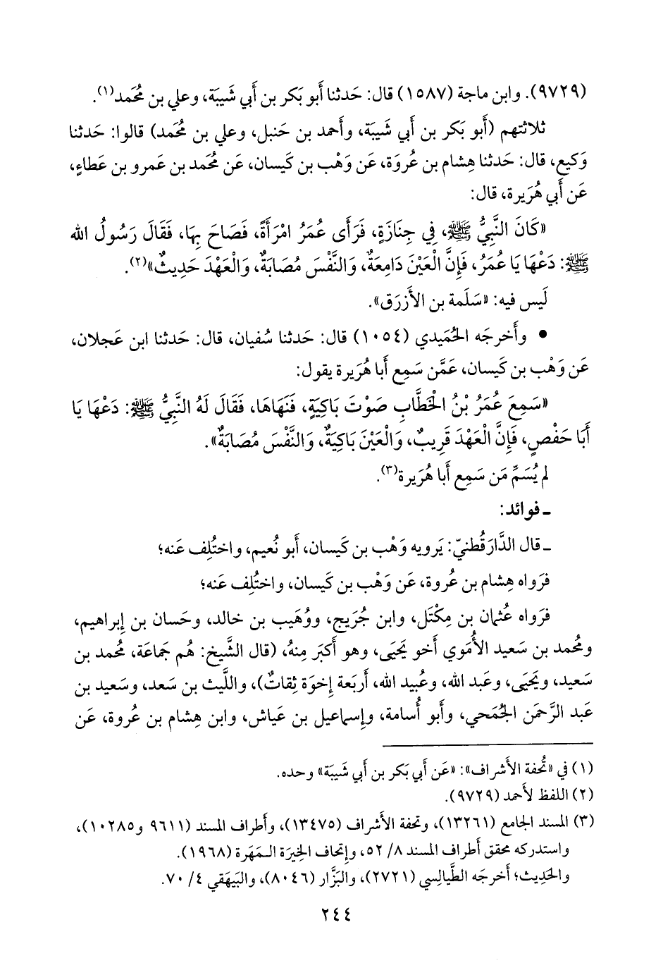(¬٢) المسند الجامع (١٣٢٦١)، وتحفة الأشراف (١٣٤٧٥)، وأطراف المسند (٩٦١١)، واستدركه محقق أطراف المسند ٨/ ٥٢، وإتحاف الخِيرَة المَهَرة (١٩٦٨).