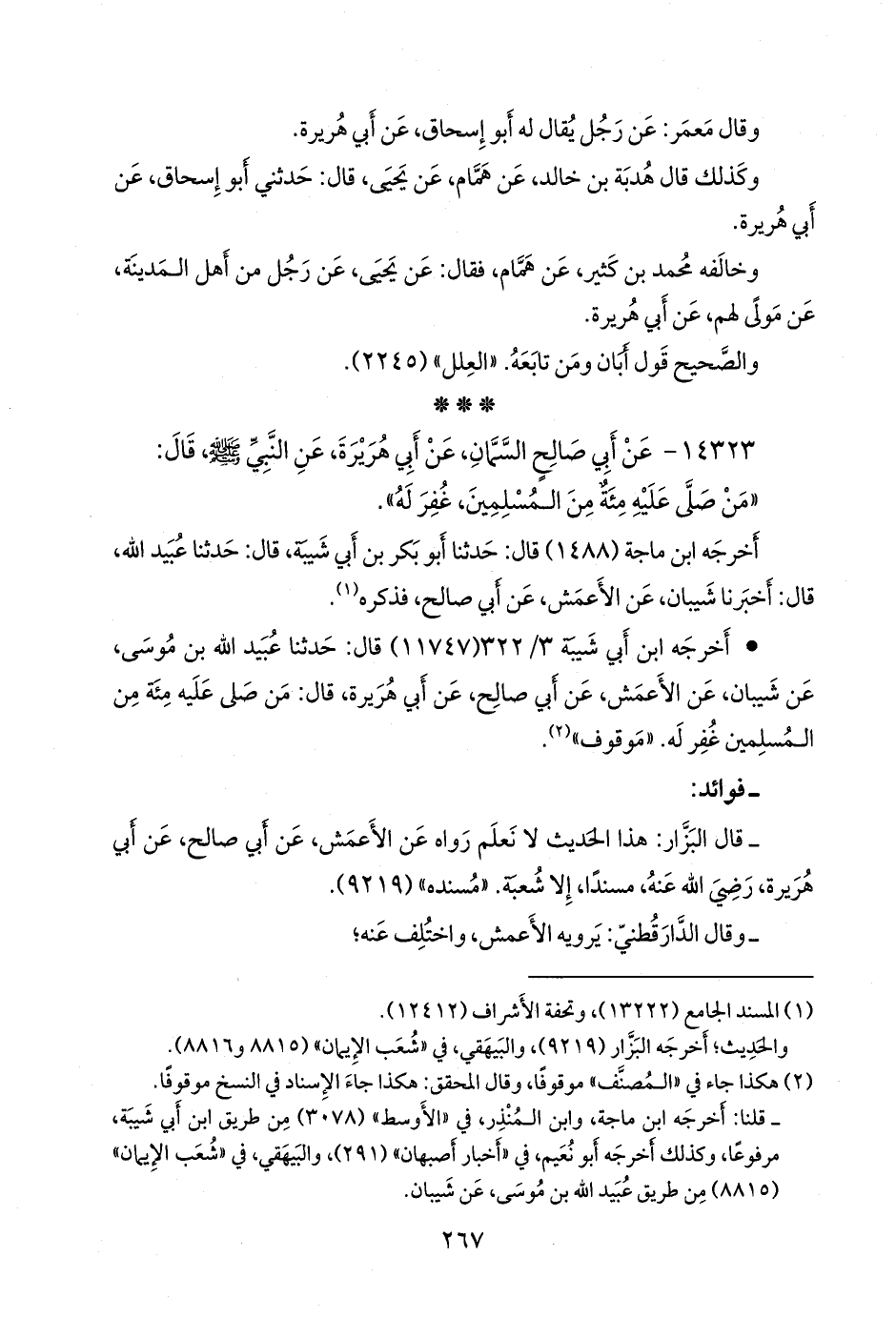 - قال البزار: هذا الحديث لا نعلم رواه عن الأعمش، عن أبي صالح، عن أبي هريرة، رضي الله عنه، مسندا، إلا شعبة. «مسنده» (٩٢١٩).