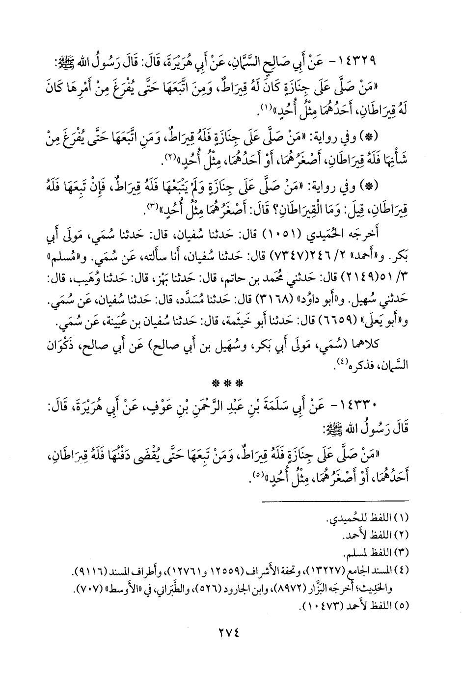 أخرجه الحُميدي (١٠٥١) قال: حدثنا سفيان، قال: حدثنا سمي مولى أَبي بكر. و «أحمد» ٢/ ٢٤٦ (٧٣٤٧) قال: حدثنا سفيان، أنا سألته، عن سمي. و «مسلم» ٣/ ٥١ (٢١٤٩) قال: حدثني محمد بن حاتم، قال: حدثنا بَهز، قال: حدثنا وهيب، قال: حدثني سهيل. و «أَبو داود» (٣١٦٨) قال: حدثنا مُسدد، قال: حدثنا سفيان، عن سمي. و «أَبو يَعلى» (٦٦٥٩) قال: حدثنا أَبو خيثمة، قال: حدثنا سفيان بن عُيينة، عن سمي.