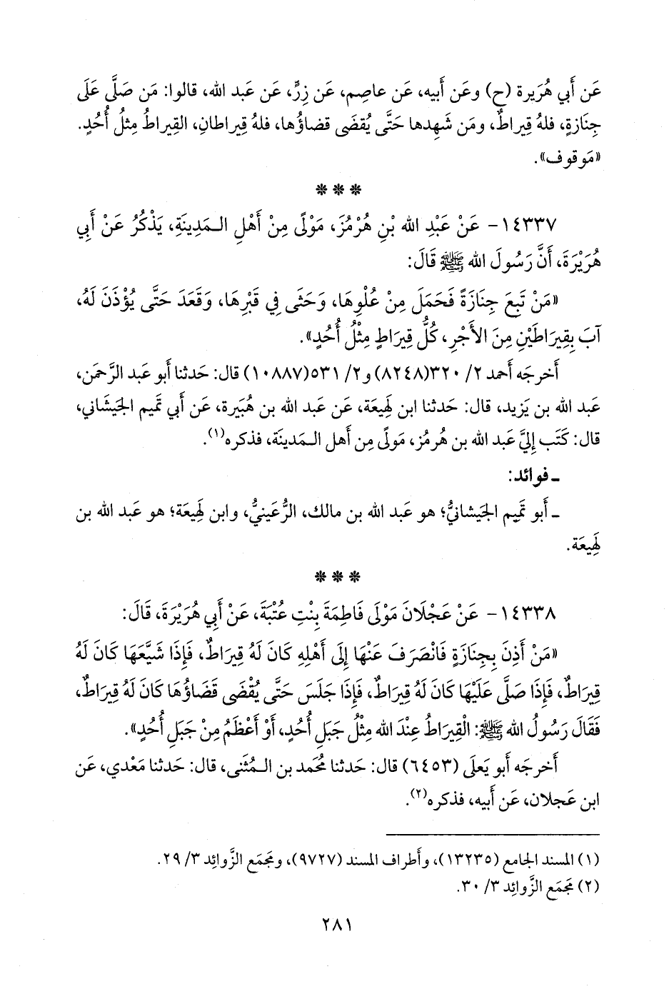 (¬١) المسند الجامع (١٣٢٣٥)، وأطراف المسند (٩٧٢٧)، ومَجمَع الزوائد ٣/ ٢٩.