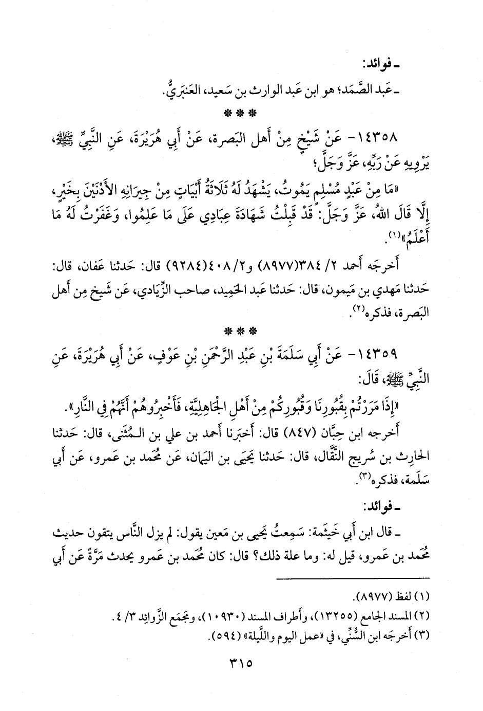 (¬٢) المسند الجامع (١٣٢٥٥)، وأطراف المسند (١٠٩٣٠)، ومَجمَع الزوائد ٣/ ٤.