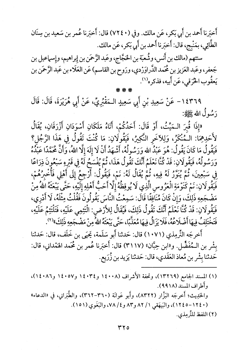 ١٤٣٦٩ - عن سعيد بن أبي سعيد المَقبُري، عن أبي هريرة، قال: قال رسول الله صَلى الله عَليه وسَلم: