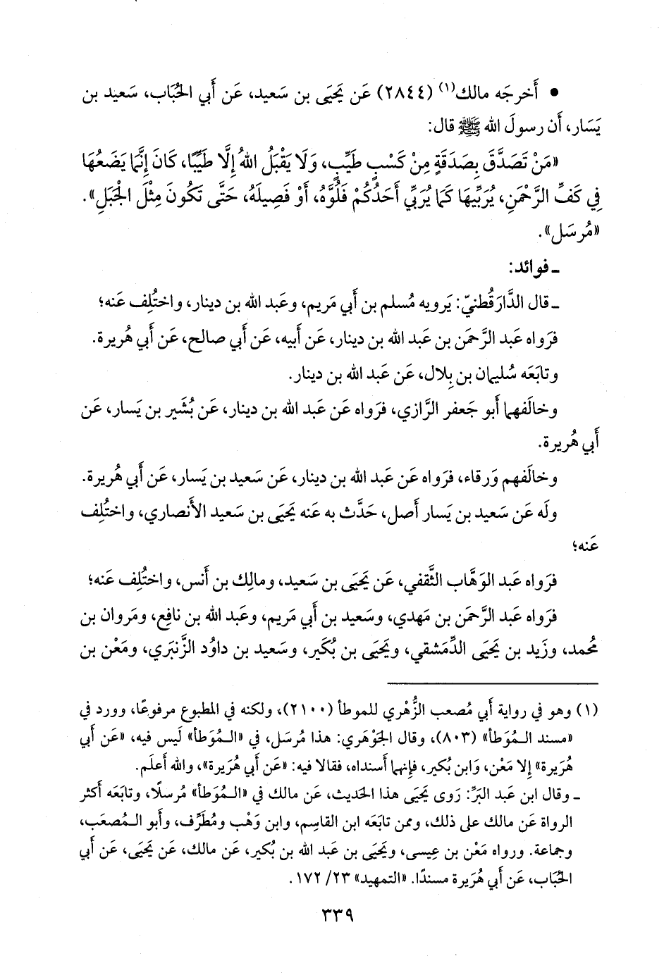 وخالفهم عبد الله بن وهب، والقعنبي، وأَبو قرة موسى بن طارق، رووه عن مالك، عن يحيى بن سعيد، عن سعيد بن يسار، مرسلا، عن النبي صَلى الله عَليه وسَلم لم يذكروا فيه أبا هريرة.