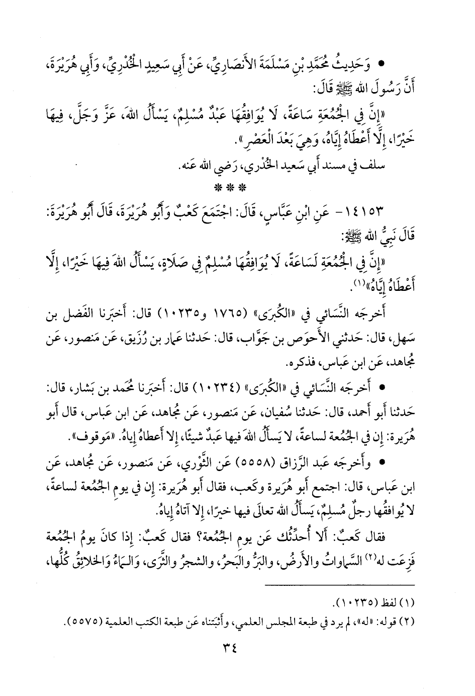 • أَخرجه النَّسَائي في «الكبرى» (١٠٢٣٤) قال: أخبرنا محمد بن بشار، قال: حدثنا أَبو أحمد، قال: حدثنا سفيان، عن منصور، عن مجاهد، عن ابن عباس، قال أَبو هريرة: إن في الجمعة لساعة، لا يسأل الله فيها عبد شيئا، إلا أعطاه إياه. «موقوف».