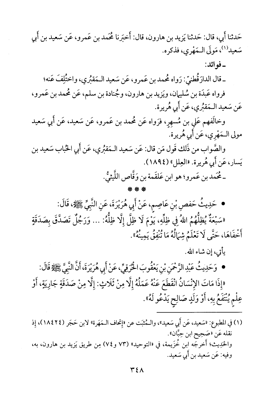 - قال الدارقُطني: رواه محمد بن عَمرو، عن سعيد المَقبُري، واختُلِف عنه؛