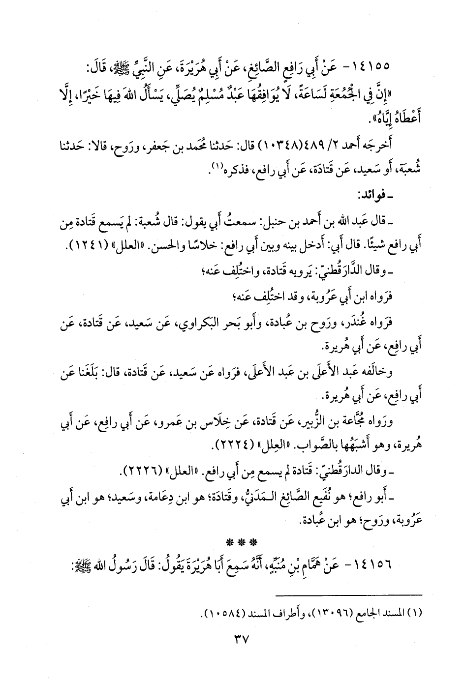 - أَبو رافع؛ هو نفيع الصائغ المدني، وقتادة؛ هو ابن دعامة، وسعيد؛ هو ابن أبي عَروبَة، وروح؛ هو ابن عبادة.