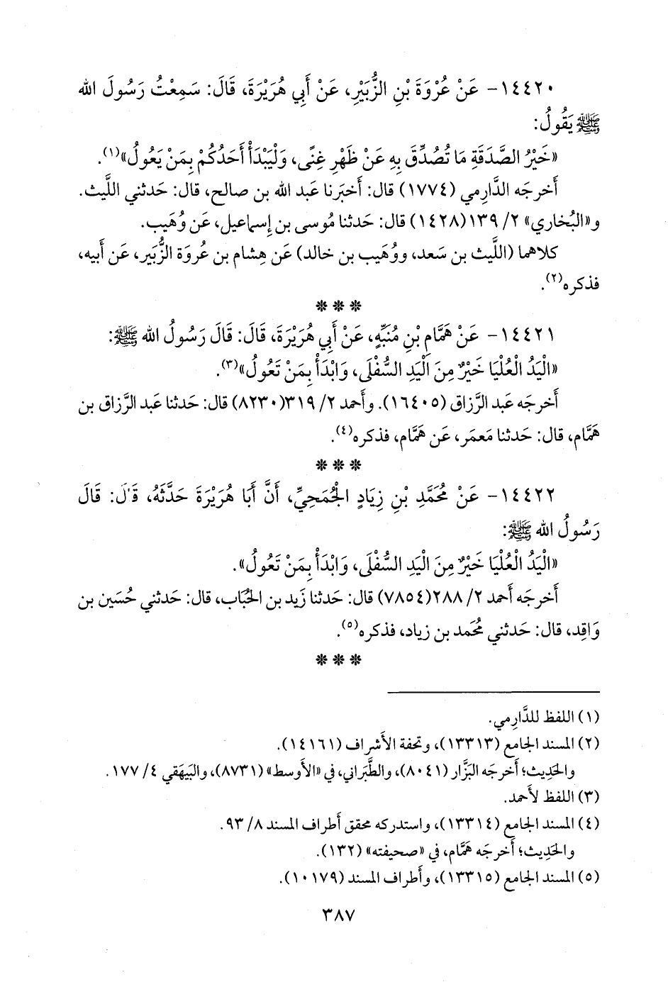 ١٤٤٢٠ - عن عروة بن الزبير، عن أبي هريرة، قال: سمعت رسول الله صَلى الله عَليه وسَلم يقول: