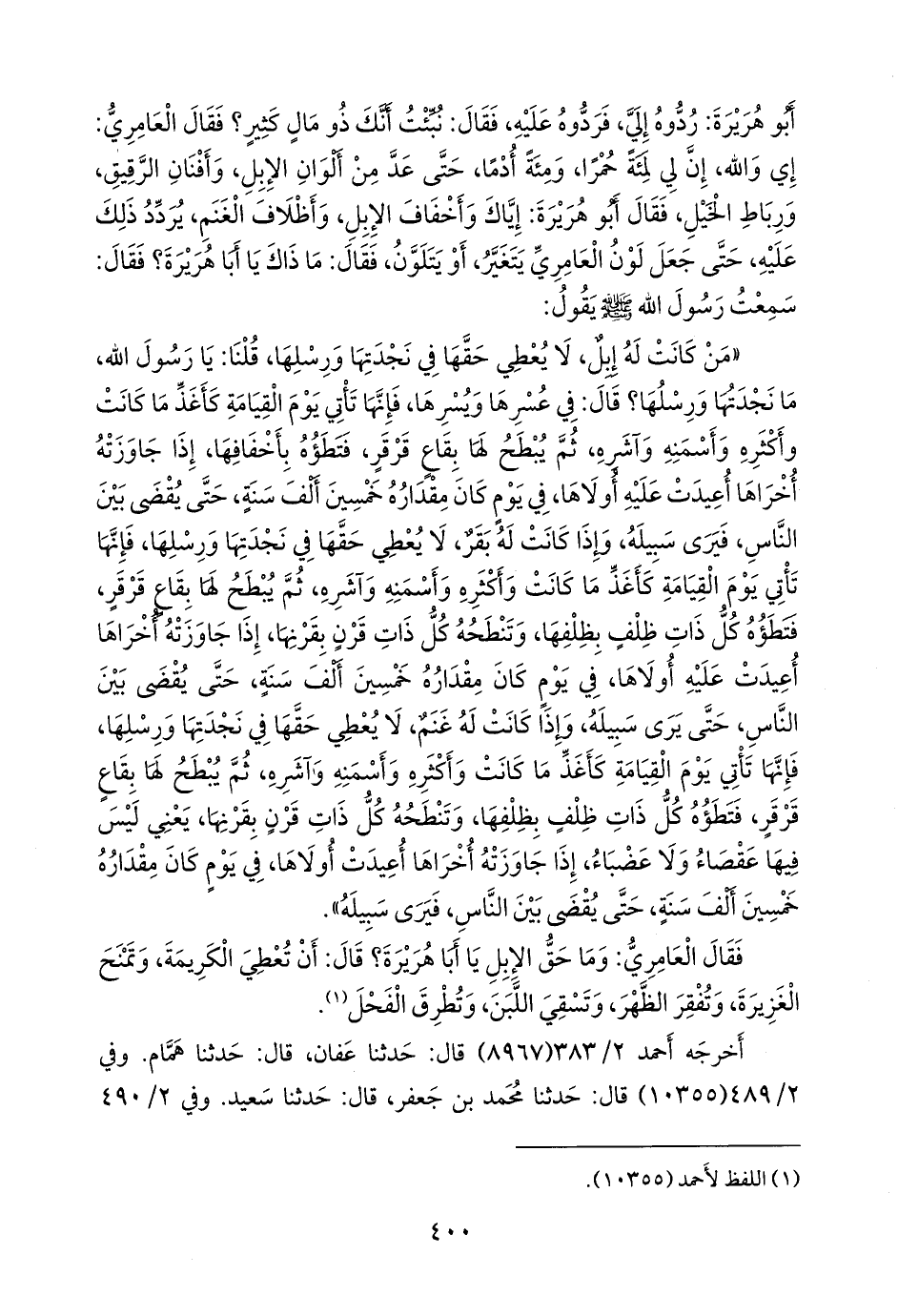 فقال العامري: وما حق الإبل يا أبا هريرة؟ قال: أن تعطي الكريمة، وتمنح الغزيرة، وتفقر الظهر، وتسقي اللبن، وتطرق الفحل (¬١).