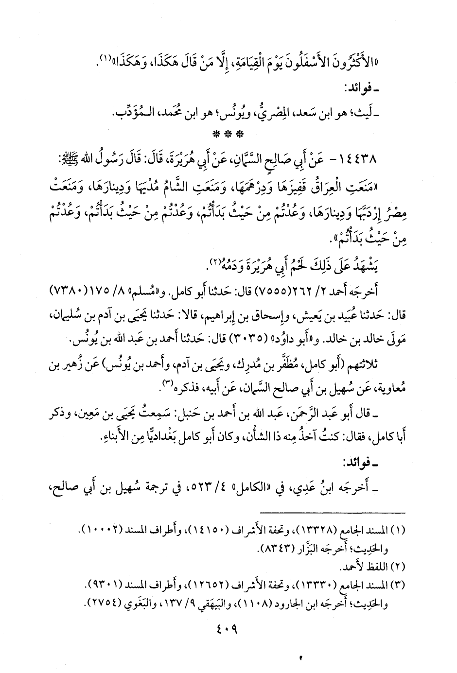 أخرجه أحمد (٧٥٥٥) قال: حدثنا أَبو كامل. و «مسلم» ٨/ ١٧٥ (٧٣٨٠) قال: حدثنا عبيد بن يعيش، وإسحاق بن إبراهيم، قالا: حدثنا يحيى بن آدم بن سليمان مولى خالد بن خالد. و «أَبو داود» (٣٠٣٥) قال: حدثنا أحمد بن عبد الله بن يونس.