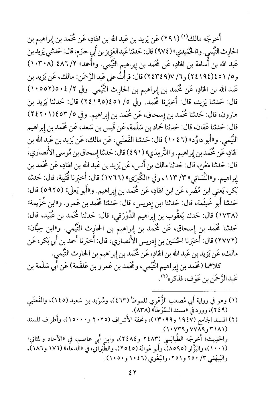 أخرجه مالك (¬١) (٢٩١) عن يزيد بن عبد الله بن الهاد، عن محمد بن إبراهيم بن الحارث التيمي. و «الحميدي» (٩٧٤) قال: حدثنا عبد العزيز بن أبي حازم، قال: حدثني يزيد بن عبد الله بن أسامة بن الهاد، عن محمد بن إبراهيم التيمي. و «أحمد» ٢/ ٤٨٦ (١٠٣٠٨) و ٥/ ٤٥١ (٢٤١٩٤) و ٦/ ٧ (٢٤٣٤٩) قال: قرأتُ على عبد الرَّحمَن: مالك، عن يزيد بن عبد الله بن الهاد، عن محمد بن إبراهيم بن الحارث التيمي. وفي ٢/ ٥٠٤ (١٠٥٥٢) قال: حدثنا يزيد، قال: أخبرنا محمد. وفي ٥/ ٤٥١ (٢٤١٩٥) قال: حدثنا يزيد بن هارون، قال: حدثنا محمد بن إسحاق، عن محمد بن إبراهيم. وفي ٥/ ٤٥٣ (٢٤٢٠١) قال: حدثنا عفان، قال: حدثنا حماد بن سلمة، عن قيس بن سعد، عن محمد بن إبراهيم التيمي. و «أَبو داود» (١٠٤٦) قال: حدثنا القَعنَبي، عن مالك، عن يزيد بن عبد الله بن الهاد، عن محمد بن إبراهيم. و «التِّرمِذي» (٤٩١) قال: حدثنا إسحاق بن موسى الأَنصاري، قال: حدثنا مَعْن، قال: حدثنا مالك بن أنس، عن يزيد بن عبد الله بن الهاد، عن محمد بن إبراهيم. و «النَّسَائي» ٣/ ١١٣، وفي «الكبرى» (١٧٦٦) قال: أخبرنا قتيبة، قال: حدثنا بكر، يعني ابن مضر، عن ابن الهاد، عن محمد بن إبراهيم. و «أَبو يَعلى» (٥٩٢٥) قال: حدثنا أَبو خيثمة، قال: حدثنا ابن إدريس، قال: حدثنا محمد بن عَمرو. و «ابن خزيمة» (١٧٣٨) قال: حدثنا يعقوب بن إبراهيم الدورقي، قال: حدثنا محمد بن عبيد، قال: حدثنا محمد بن إسحاق، عن محمد بن إبراهيم بن الحارث التيمي. و «ابن حِبَّان» (٢٧٧٢) قال: أخبرنا الحسين بن إدريس الأَنصاري، قال: أخبرنا أحمد بن أَبي بكر، عن مالك، عن يزيد بن عبد الله بن الهاد، عن محمد بن إبراهيم بن الحارث التيمي.