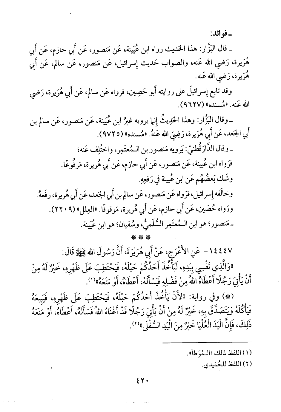 كلاهما (مالك بن أنس، وسفيان بن عُيينة) عن أبي الزناد عبد الله بن ذكوان، عن عبد الرَّحمَن بن هُرمُز الأعرج، فذكره (¬٤).