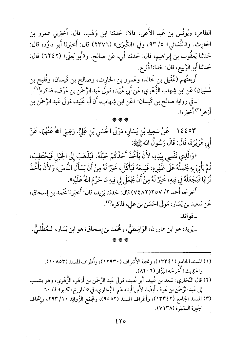 ١٤٤٥٣ - عن سعيد بن يسار مولى الحسن بن علي، رضي الله عنهما، عن أبي هريرة، قال: قال رسول الله صَلى الله عَليه وسَلم: