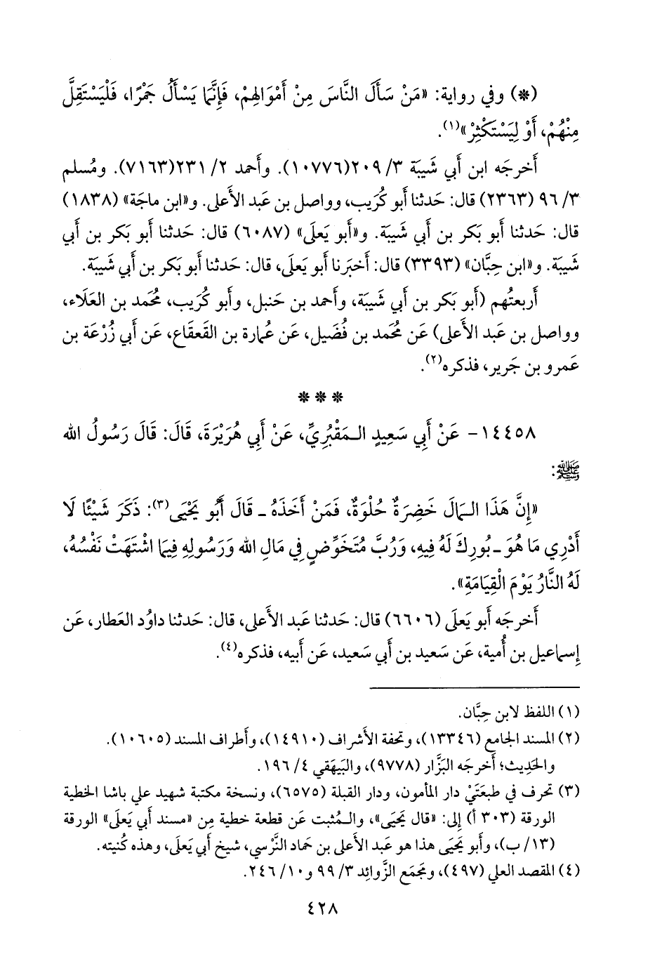 (¬١) تصحف في طبعتي دار المأمون، ودار القبلة (٦٥٧٥)، ونسخة مكتبة شهيد علي باشا الخطية الورقة (٣٠٣ أ) إلى: «قال يحيى»، والمثبت عن قطعة خطية من «مسند أبي يَعلى» الورقة (١٣/ ب)، وأَبو يحيى هذا هو عبد الأعلى بن حماد النَّرْسي، شيخ أبي يَعلى، وهذه كنيته.