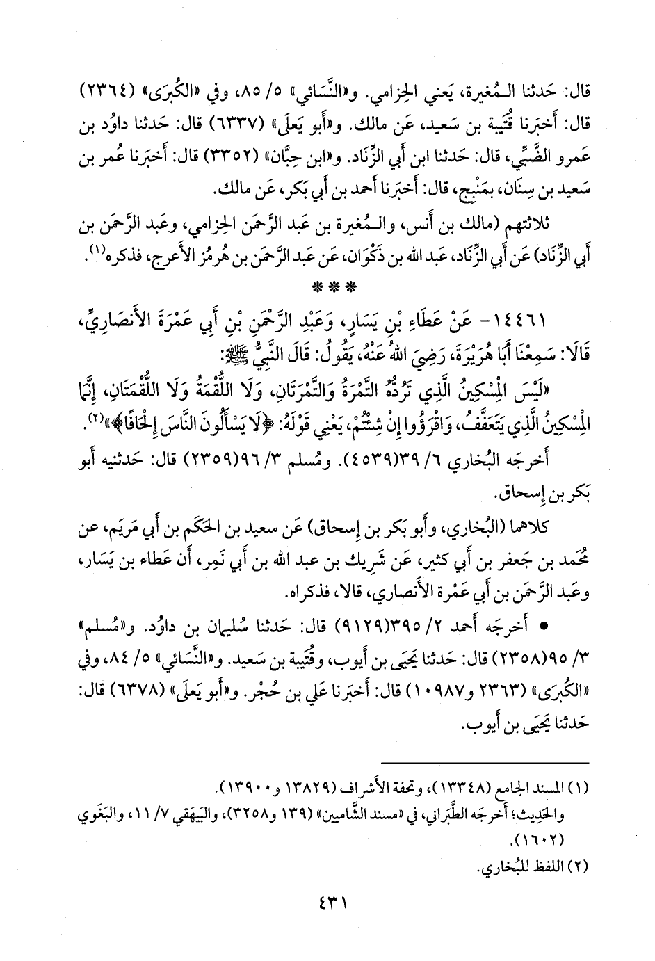 (¬٣) المسند الجامع (١٣٣٤٩)، وتحفة الأشراف (١٤٢٢١)، وأطراف المسند (١٠٠٧١).