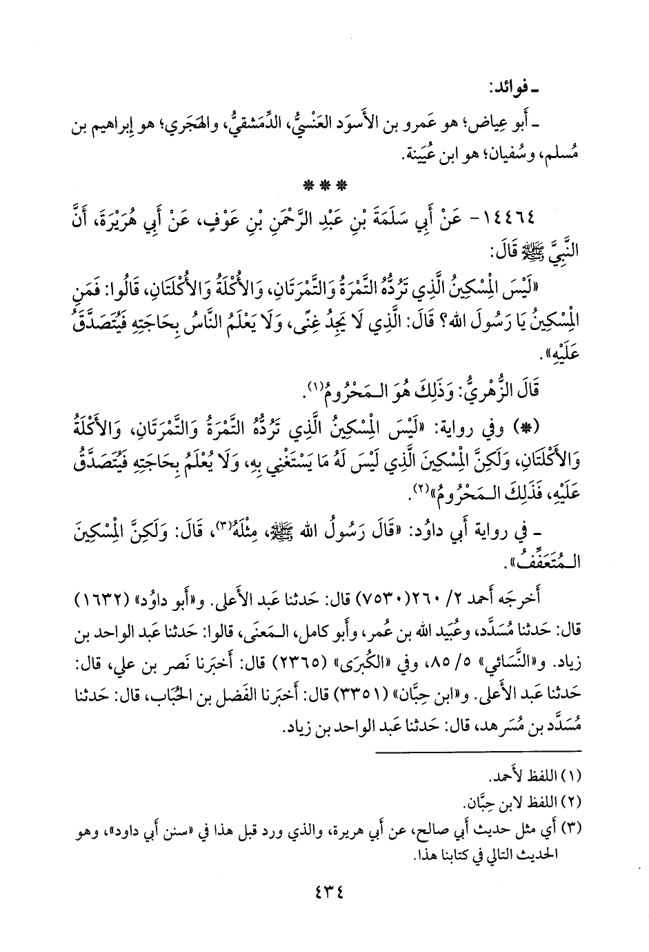 - في رواية أبي داود: «قال رسول الله صَلى الله عَليه وسَلم، مِثلَه (¬٣)، قال: ولكن المسكين المتعفف».