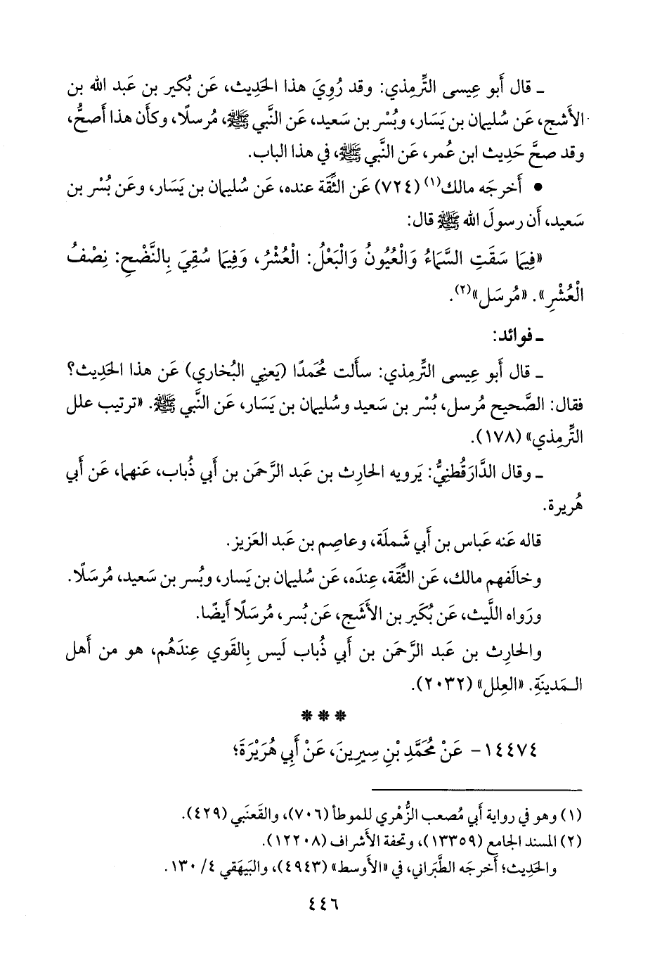 - قال التِّرمِذي: سألتُ محمدًا، يعني ابن إسماعيل البخاري، عن هذا الحديث؟ فقال: الصحيح مرسل، بُسر بن سعيد وسليمان بن يسار، عن النبي صَلى الله عَليه وسَلم. «ترتيب علل التِّرمِذي» (١٧٨).