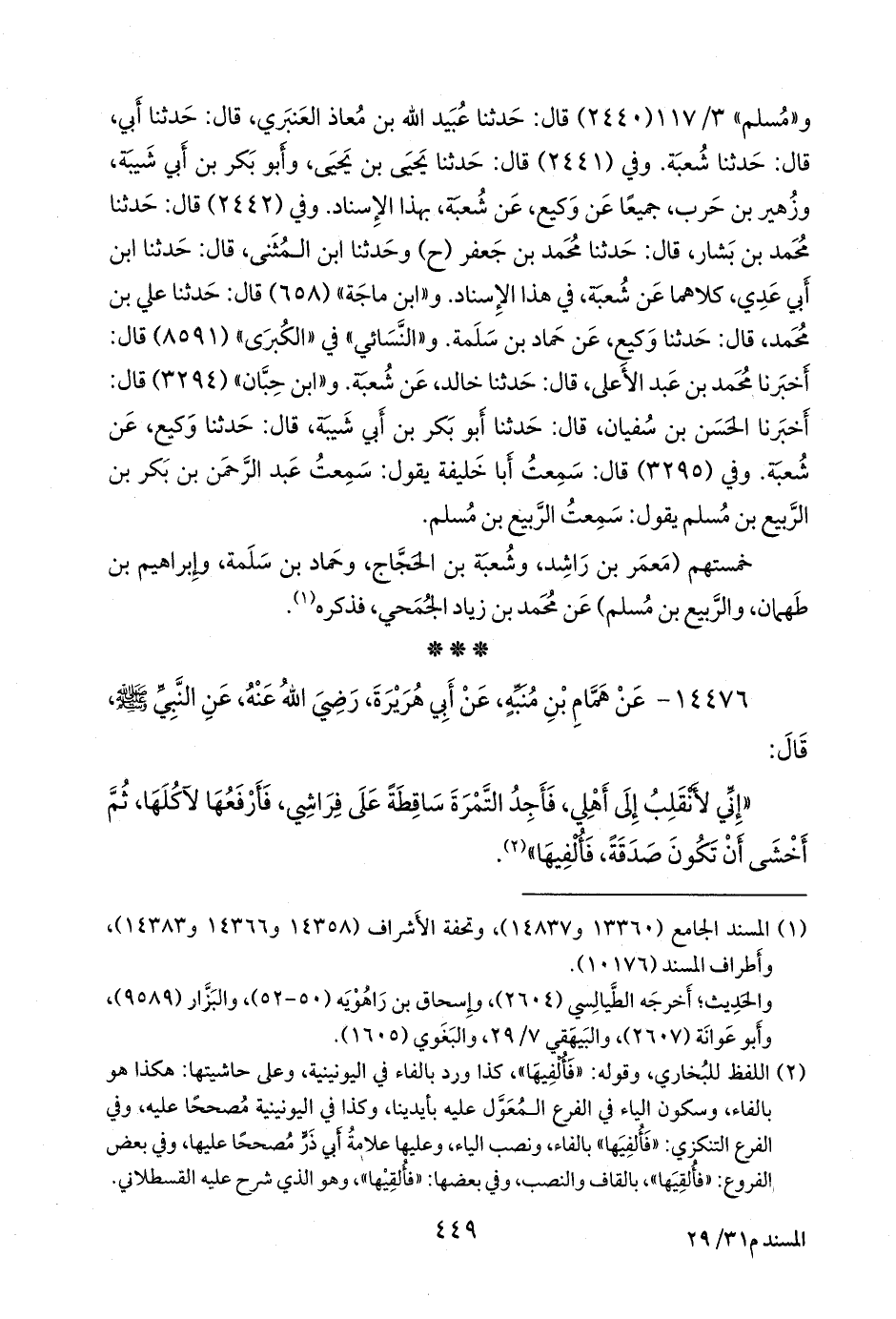 (¬١) المسند الجامع (١٣٣٦٠ و ١٤٨٣٧)، وتحفة الأشراف (١٤٣٥٨ و ١٤٣٦٦ و ١٤٣٨٣)، وأطراف المسند (١٠١٧٦).
