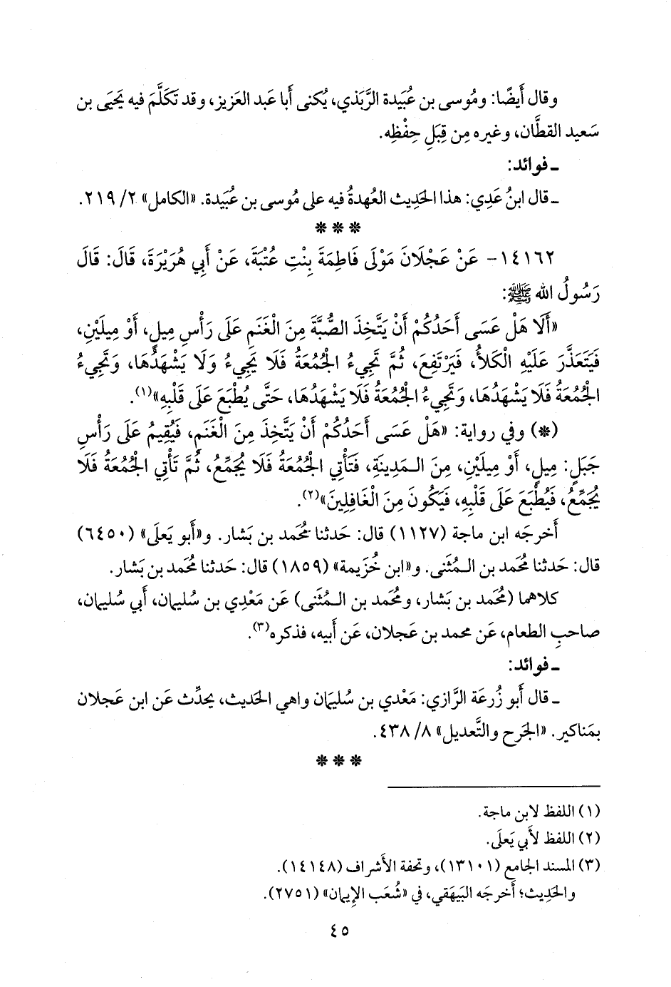 (¬٣) المسند الجامع (١٣١٠١)، وتحفة الأشراف (١٤١٤٨).