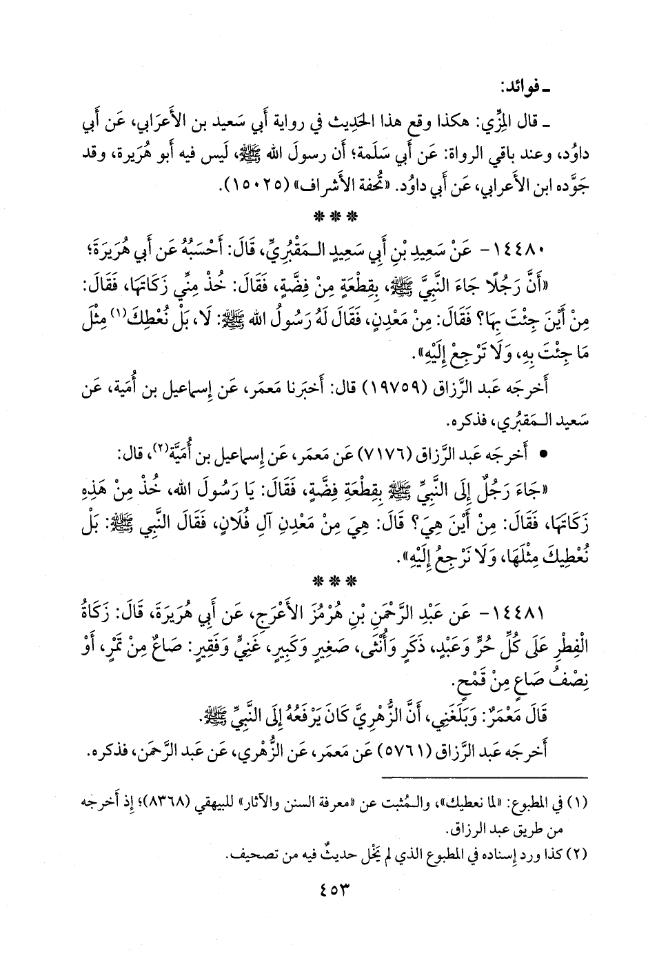 • وأخرجه عبد الرزاق (٥٨١٧) عن مَعمَر، عن الزُّهْري، عن الأعرج، عن أبي هريرة، قال: كان زكاة الفطر على كل غني وفقير. «موقوف».