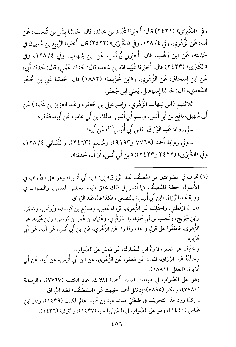 (¬١) تحرف في المطبوعتين من «مصنف عبد الرزاق» إِلى: «ابن أَبي أَنس»، وهو على الصواب في الأُصول الخطية للمصنف كما أَشار إِلى ذلك محقق طبعة المجلس العلمي، والصواب في رواية عبد الرزاق «ابن أَبي أُنيس» بالتصغير، هكذا قال عبد الرزاق.