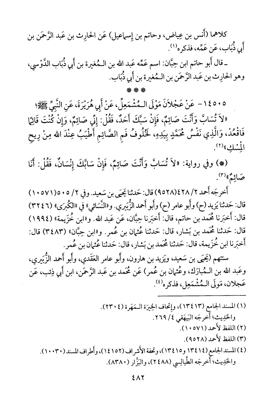 (¬٣) المسند الجامع (١٣٤١٤ و ١٣٤١٥)، وتحفة الأشراف (١٤١٥٢)، وأطراف المسند (١٠٠٣٠).