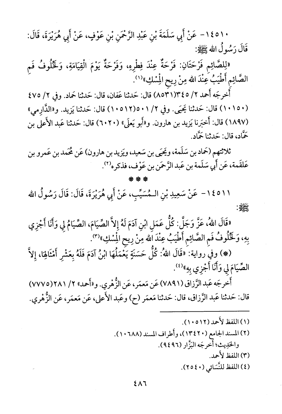 ١٤٥١٠ - عن أبي سلمة بن عبد الرَّحمَن بن عوف، عن أبي هريرة، قال: قال رسول الله صَلى الله عَليه وسَلم:
