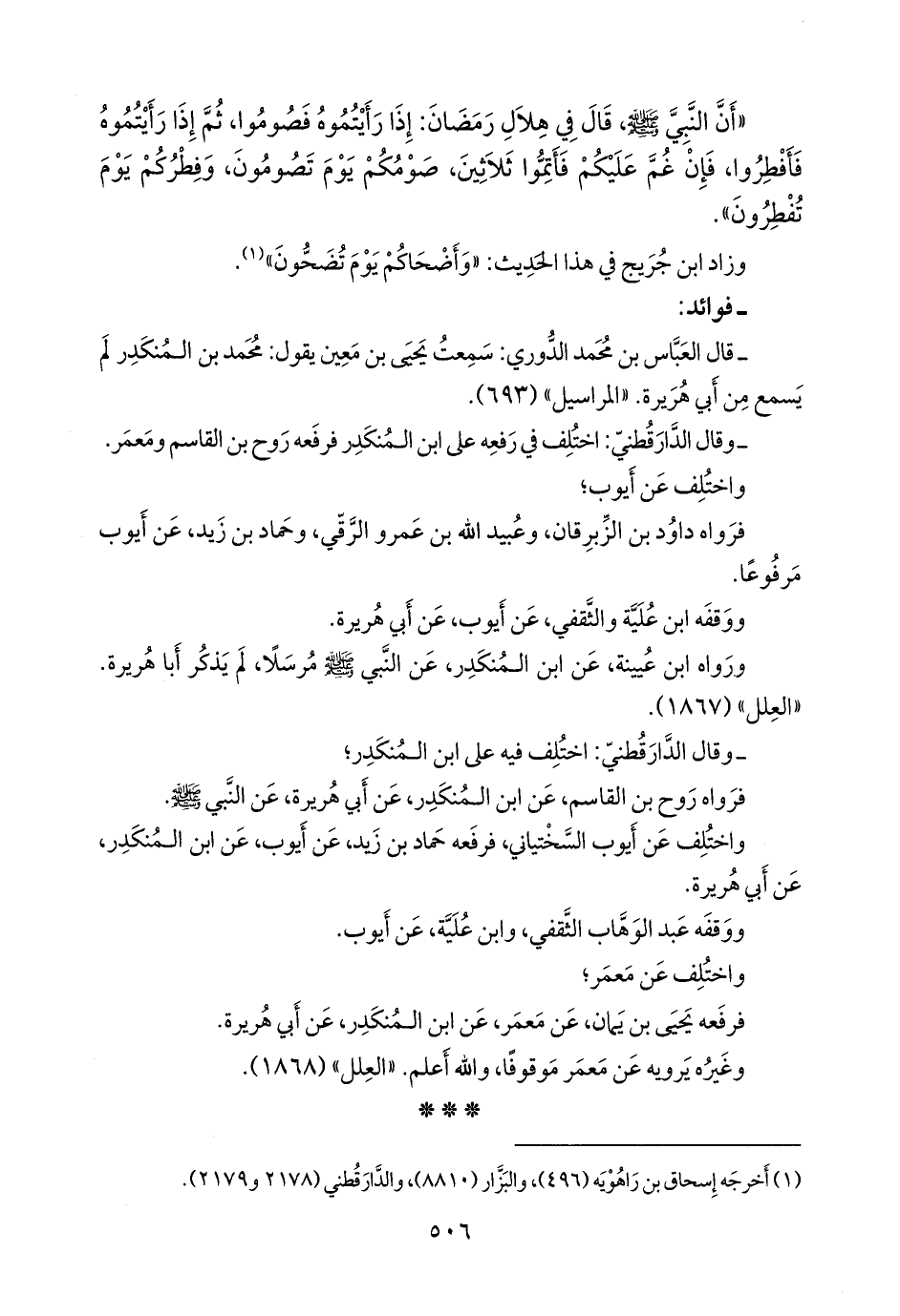واختلف عن أيوب السَّخْتِياني، فرفعه حماد بن زيد، عن أيوب، عن ابن المُنكدِر، عن أبي هريرة.