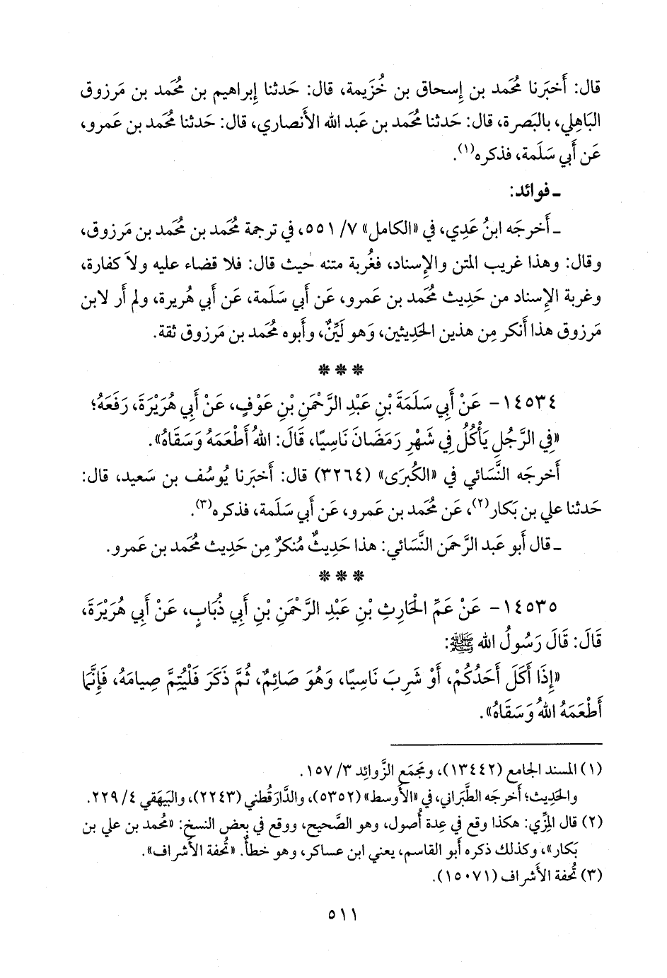 ١٤٥٣٤ - عن أبي سلمة بن عبد الرَّحمَن بن عوف، عن أبي هريرة، رفعه؛
