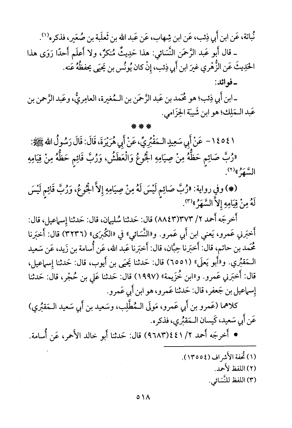 ١٤٥٤١ - عن أبي سعيد المَقبُري، عن أبي هريرة، قال: قال رسول الله صَلى الله عَليه وسَلم: