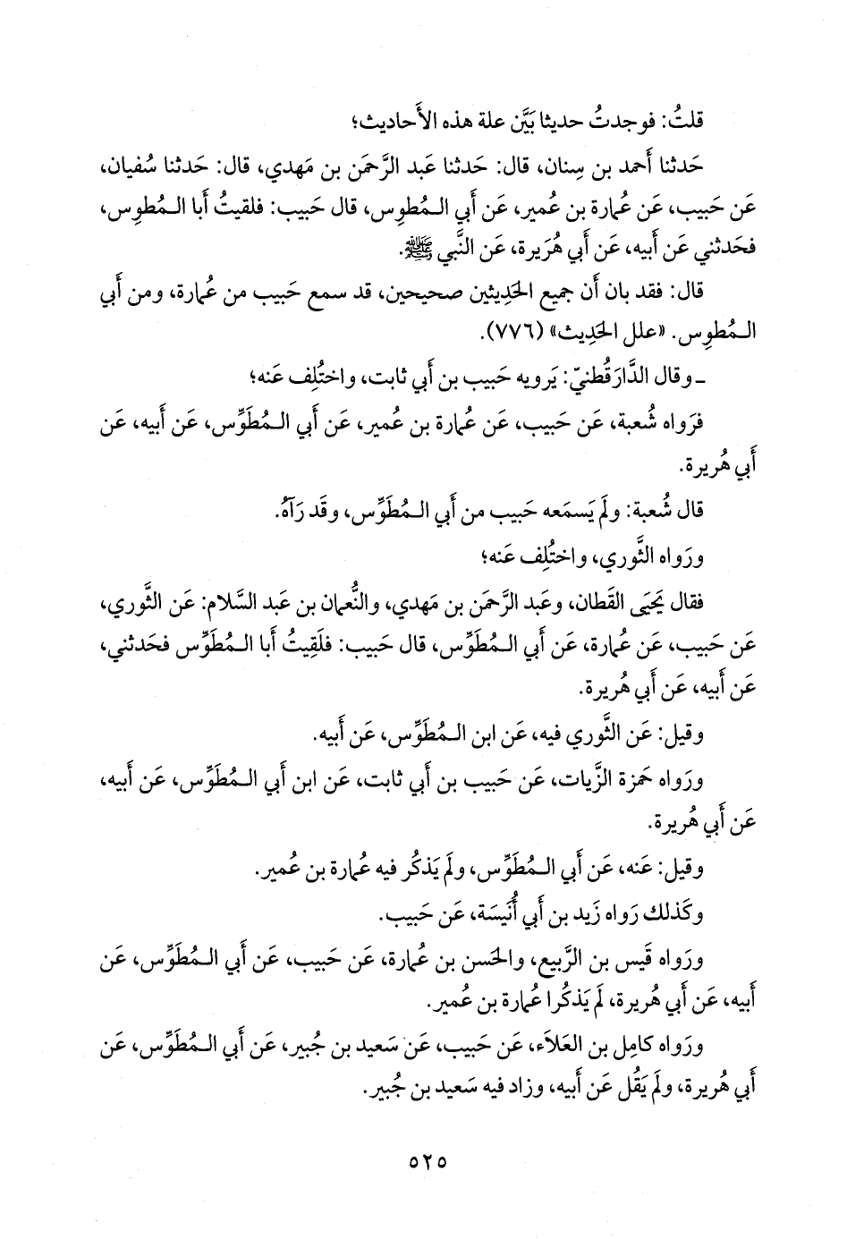 قال: فقد بان أن جميع الحديثين صحيحين، قد سمع حبيب من عمارة، ومن أبي المطوس. «علل الحديث» (٧٧٦).